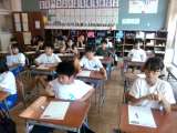 外国語の学習では、お互いのことをよく知るために、できることを伝え合いました。英...