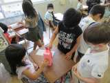 2組では、自由研究の作品を見合いました。磁力を使った魚釣りゲームを作った子や、...