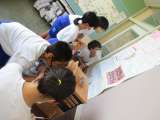 静かな中で書いたり話し合ったり集中して取り組んでいます。