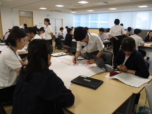 7月29日(火)Toyama Sakuraビルにて、第2回カウンセリング講座を実施しました。富山市教育センター臨床心理士 根塚明子先生を講師に迎え、「チームを生かした学校教育相談」というテーマで研修を行いました。演習では、2つの仮想事例に関して、担任、養護教諭、学年主任、特別支援教育コーディネーター、スクールカウンセラー等、学校内での様々な立場に立ち、悩みを抱える子どもを支援する方法を考えるケース会議をグループで行いました。グループで話し合ったことを模造紙にまとめ、いくつかのグループが発表した後、根塚先生より助言をいただきました。