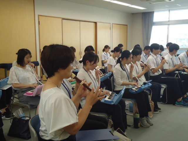 受講者からは、「楽器に触れる時間を多く設けたり、音楽を用いた活動を常時取り入れたりすることで、子どもたちの心がほぐれたり音楽が好きになったりする」「歌う際に気をつけるポイントや作詞家、作曲家の意図や工夫を教師がしっかりととらえておくことで、子どもたちの歌声がよりよくなる」「子どもたちが『音楽の学習が大好き』と思えるよう、今日学んだ音楽遊びを生かしていきたい」といった声が聞かれました。音楽に親しみ、音楽と豊かにかかわろうとする子どもたちを育てるには、どのような指導が効果的かを学ぶ充実した研修となりました。