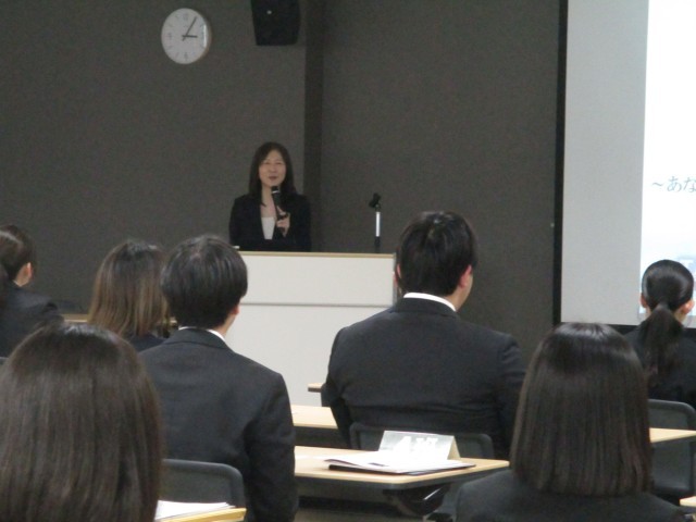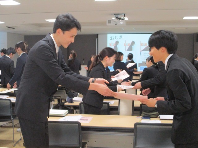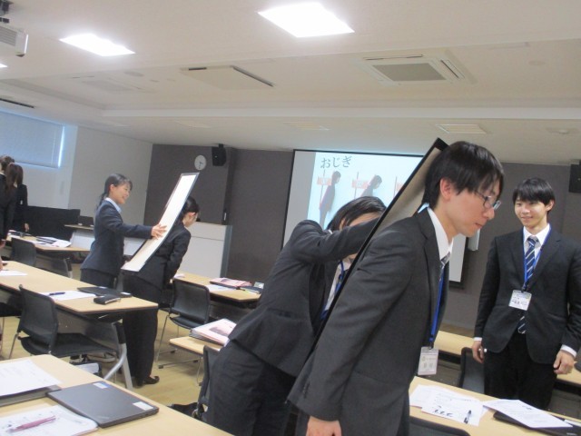 最後に、株式会社 よしともコミュニケーションズ 高沢由美先生より、「接遇」について演習を中心とした講義を受けました。受講者は礼の仕方や電話対応、物の受け渡しの際の心配り等、具体的な場面を想定した演習に積極的に取り組み、笑顔で人に接することや信頼を得る話し方をすることの大切さについて学ぶことができました。(担当:研修係)