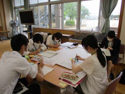 教科指導研修会1は小学校における授業研究で今回は宮野小学校で6年次教職員15名が参加しました。5年算数科の公開授業参観、授業に関する研究協議、指導助言の内容で研修しました。研究協議では、班ごとに個人の学びを交換し、終盤には各班の学びや成果を共有し、授業者、参観者が共に学び合う研修会となりました。