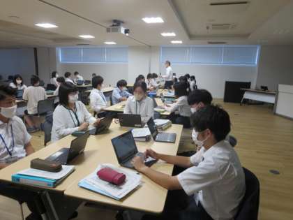 「部活動指導」において、富山市教育委員会 学校教育課 専門指導主事より、講義・演習をしていただきました。部活動ガイドラインの理解を深めるとともに、現在の部活動指導の在り方から、今後目指していく方向性についてお話をいただきました。演習では、指導内容、生徒や保護者、外部指導者との関係、活動日や活動時間等から、課題となることをグループで出し合いました。日ごろ、感じていることや悩んでいることを共有することによって、今後の対応や手がかりを考えていくよい機会となりました。(担当:研修係)