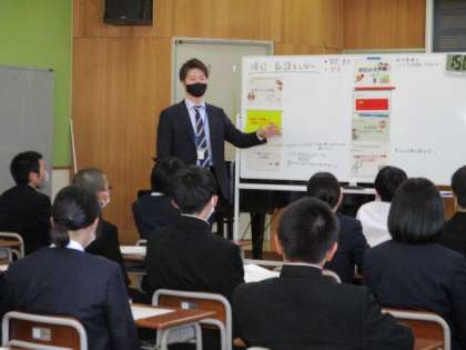 11月10日(木)奥田中学校にて、3年次教員研修会(授業研究)を行いました。17名の先生方が1年学級活動の授業を参観しました。「授業の過ごし方」を学級全員が達成するための取り組みを考えようという議題のもと、学習への参加の仕方や学習準備の整え方をよりよくしていくにはどうすればよいかを話し合い、その活動を決めていこうとする学級会でした。子どもたちは「授業態度にメリハリをつけることが大切で、みんなで話し合って一番よい方法を採用すればよい」「そもそも忘れ物をすることがよくない、それは自分の責任の問題だ」など、班や学級全体で友達の考えを真剣に聴き合い、熱く語り合っていました。自分たちの学級を自分たちの手でよりよくしていきたいという子どもたちの思いがあふれる話し合いでした。