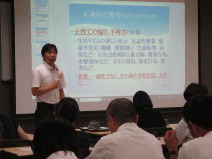受講者からは、「家族の気持ちは当事者にしか分からない部分もあるが、できる限り寄り添ったり共感したりしていきたい」「学校でチーム体制をつくり、子どもの将来を見据えた支援をしていく必要がある」「できること、できないことを明確にしながら、保護者の理解を得る努力をしていきたい」などの感想が聞かれました。これからも、家族の話に耳を傾け、子どもの成長のために共に歩んでいくという姿勢を大切にしていきたいという意欲を新たにしていました。(担当:研修係)