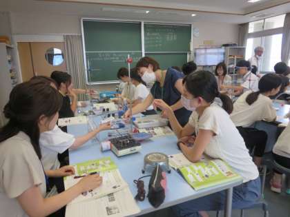 8月2日(水)午後、豊田小学校にて小学校実験・実技研修会(理科)を行いました。理科部会の先生方が講師となり、「物のあたたまり方」「物のとけ方」「物の燃え方と空気」の学習指導の仕方、安全な実験の行い方等について研修をしました。