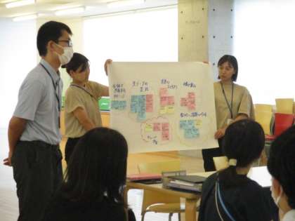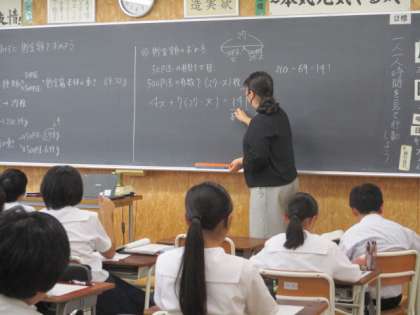 9月20日(水)芝園中学校にて「6年次教職員研修会教科指導研修会2・閉講式」を行いました。1年数学科「方程式」の授業を参観しました。授業では「貯金箱を開けずに、貯金額を求めよう」という課題に実際に硬貨の入った貯金箱を目の前にして真剣に考えていました。重さと枚数をもとに見当を付けて貯金額に迫ったり、Xを用いて各硬貨の枚数を求め貯金額に迫ったりと多様な取り組みが見られました。授業の最後には実際に缶切りで貯金箱を開け貯金額を確かめました。生徒たちはわくわくしながら見つめ、開封と同時に教室は喜びと驚きなどの感動に包まれました。