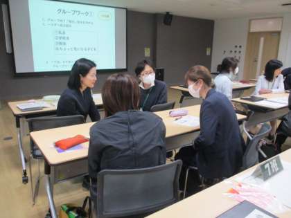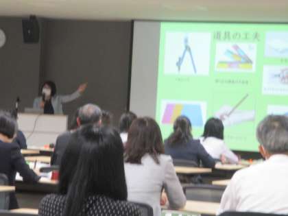 受講者の先生方は、和田先生の講義を拝聴し、担当する子どもの行動の背景や気持ち、強みを生かした支援策等についてグループで話し合いました。受講者からは「具体的な助言をいただいたので、早速明日から実践したい」「同じ悩みをもつ先生方と話し合い、安心した」という声が聞かれました。また、ビニル手袋をして折り紙で兜を作るという演習を通して、「うまくいかず焦ってしまう子どもの気持ちが分かった」「今まで急かしてしまっていた自分の指導の在り方を反省した」という先生方も多かったようです。