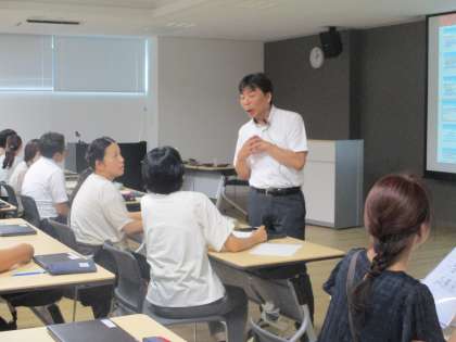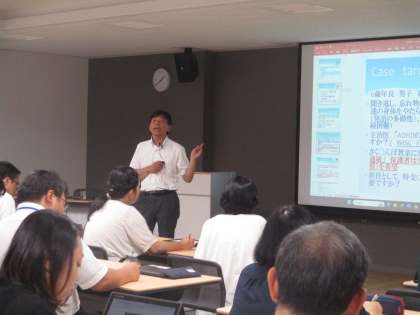 7月30日(火)Toyama Sakuraビルにて、新潟大学教授 村中智彦先生を講師にお招きし、「特別支援教育推進研修会(第3回特別支援学級等新任担当教員研修会)」を実施しました。「困った行動の理解と行動・学習支援 −特別支援学級・通級指導教室を担当する上で基礎的で大事なこと−」をテーマに、前半は村中先生の講義を拝聴し、後半は「子どもたちの行動の理解と支援」について難しいことや効果的だったこと等について、グループ協議を行いました。