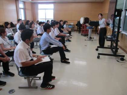 8月6日(火)、光陽小学校にて小学校実験・実技研修会(音楽科)を行いました。音楽部会の先生方が講師となり、「ハーモニーを味わおう」を研修テーマに、子どもが歌いたくなる歌唱指導、リコーダー指導、音楽づくり、鑑賞、器楽指導等について研修を行いました。