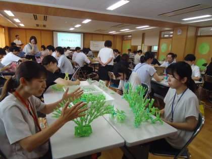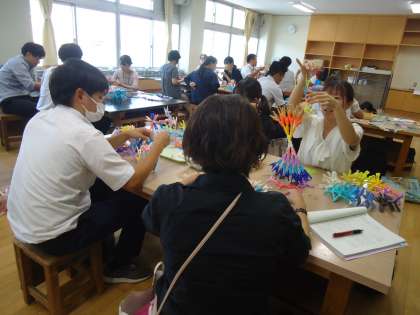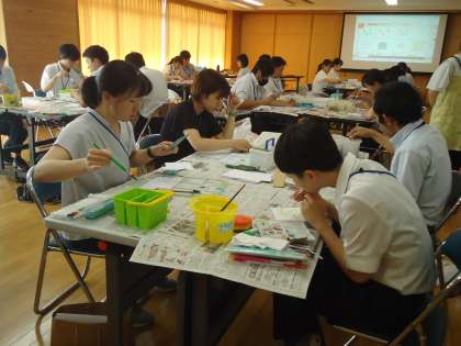 8月6日(火)、藤ノ木小学校にて小学校実験・実技研修会(図画工作科)を行いました。図画工作科部会の先生方が講師となり、「つくりだす喜びを味わおう」を研修テーマに、洗濯ばさみによる造形あそび、絵の具やクレパスを使った様々な表し方、鑑賞と評価、子どもの見方等について研修しました。