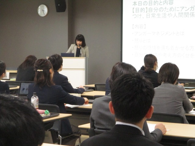 後半は、臨床心理士を講師として「アンガーマネジメント」について講義・演習を行いました。怒りの感情をどのようにコントロールしていけばよいのかを考える中で、受講者は生徒指導や子ども理解でも活用できることを学んでいました。
