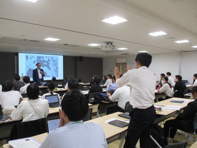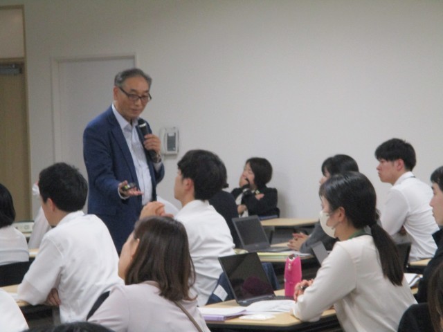 5月13日(火)第1回3年次教員研修会を行いました。國學院大學 人間開発学部 教授 杉田 洋 先生をお迎えし、「子どもがよりよく育つインクルーシブな学級づくりー指導観のパラデイムシフトと特別活動の活用ー」と題して、講演をいただきました。「誰一人取り残されない子ども中心の学級経営」「学級活動は、人間関係形成・社会参画・自己実現の場である」「これからの時代を生きる子どもたちには、歩み寄る力、思いやる力、折り合いをつける力、本気で語り合える力を育てていくことが大切である」など、3年次の受講者の思いを揺さぶるような内容でした。受講者は、これまでの固定観念にとらわれず、子ども中心の学級経営を目指したいと、意欲を高めました。