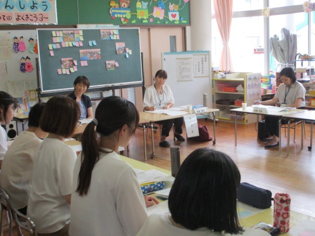 子どもの興味・関心をとらえ、子どもと共に考え、つくっていく遊び、子どもたちが自分のやりたいことにのびのびと取り組むことができる環境構成、子どもが思いや願いを伝え合う話合いの場のもち方、教師の援助や声をかけるタイミング等、多くの学びを得ることができました。明日からの保育や学習に活かすことのできる貴重な研修となりました。