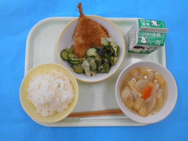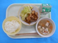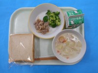 きょうのメニューは、コッペパン、ぎゅうにゅう、やさいのトマトスープに、ひよこま...