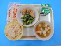 このひのメニューは、ごはん、ぎゅうにゅう、かきたまじる、ゆでブロッコ...