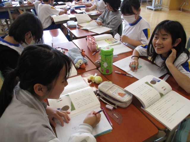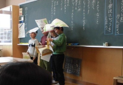 国語科「三年とうげ」の学習では、グループで音読劇をしました。登場人物の様子や気...