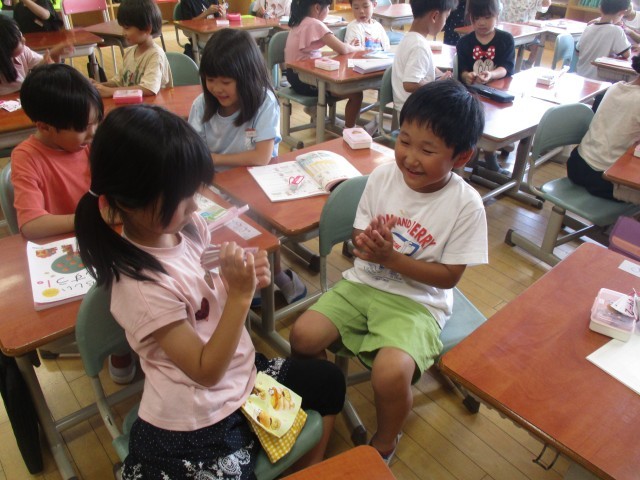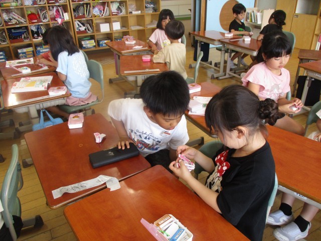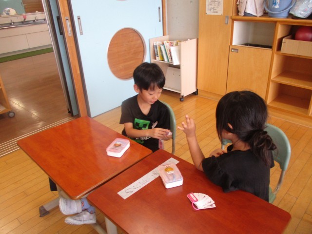 計算カードを使って、友達とひき算の問題を出し合いました。素早く答えたり、正しく答えたりしようと、一生懸命に取り組む子供たちの姿が見られました。