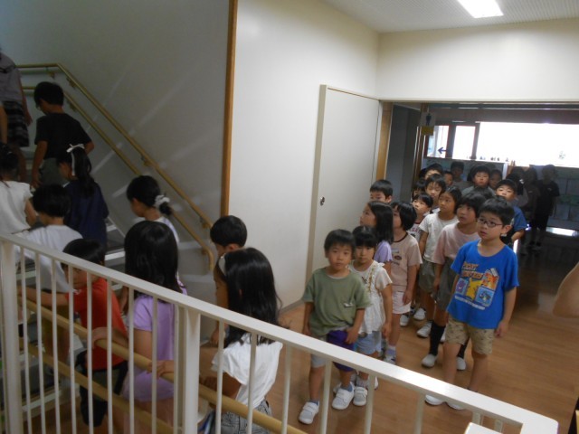 今日は防災の日です。本校でも、地震・津波の訓練を行いました。地震が収まったあと、高い場所に避難しました。移動時、たいへん静かにスムーズに移動しました。まとめでは、地震が起きた時、「~かもしれない」と、自分で想定して行動することの大切さについて学びました。