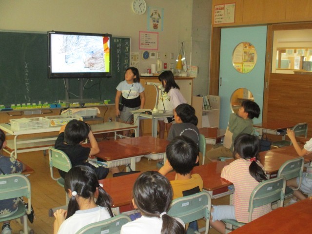 先日発足したばかりの、2学期の係グループ。早速、図書係が読書タイムに、読み聞かせを行いました。