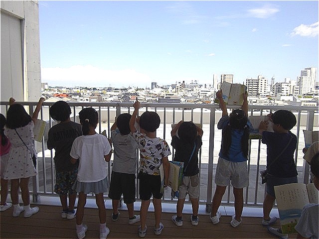 青空に向かって元気よく読み、みんなで音読を楽しみました。