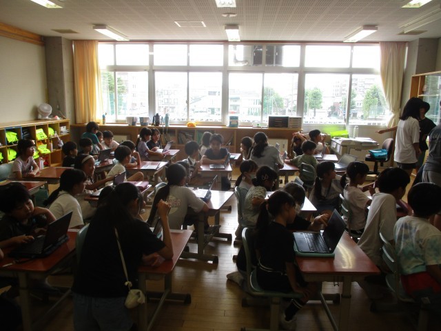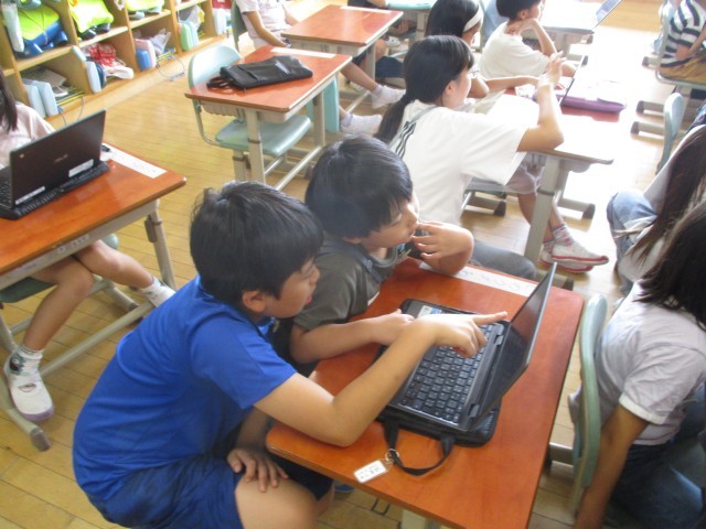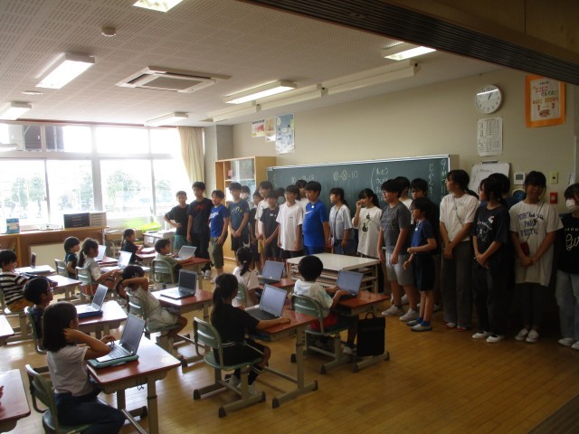 総合的な学習の時間の自分たちの取組の参考に、各学年へアンケートをとっています。今日は1年生に直接依頼へ行き、その場で回答してもらいました。