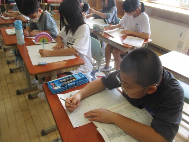 宿泊新聞づくりをしました。国語の学習で学んだ構成や見出しのつけ方を生かし、自分なりの宿泊新聞になるように工夫しています。どんな新聞になるのか楽しみです。