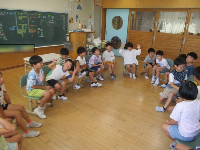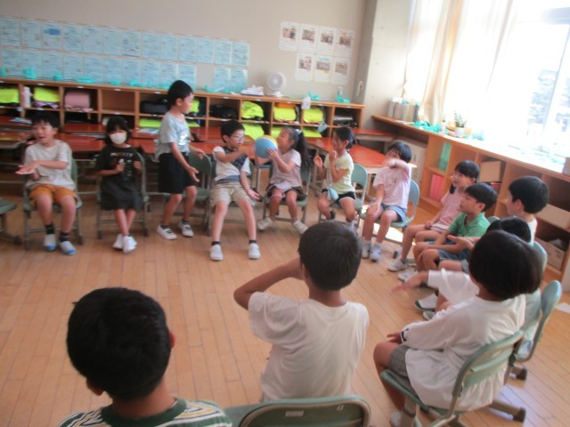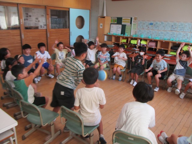今日の学級の時間は爆弾ゲームを行いました。曲がいつ終わるか分からないドキドキの中、楽しそうにボールを回していました。