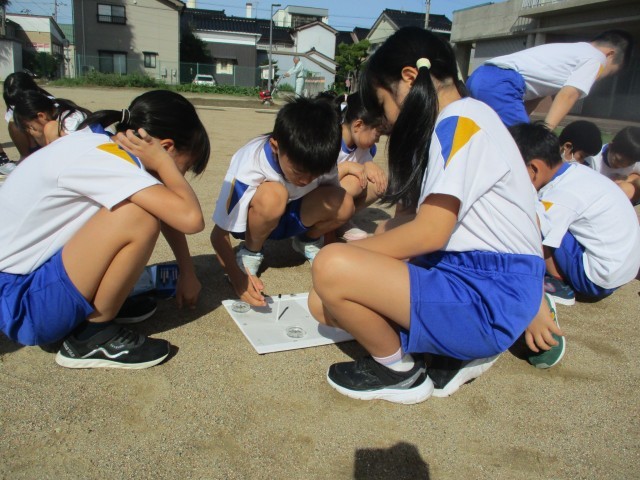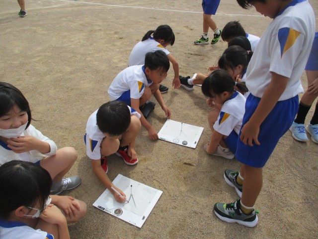3年生の理科では、太陽の位置と影の向きの変わり方について調べました。観測を通して、時間とともに影が移動することや影の長さが変わることを捉えました。