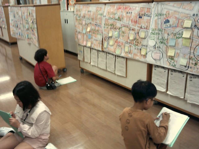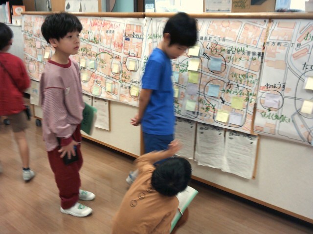 1学期に探検した場所について調べたことを報告し合い、「もっと詳しく調べたい」「すてき発見が足りていない」「もっと知りたいことができた」など様々な思いをもちました。そこで、もう一度西っ子探偵団として調査してこようと、次に行きたい場所や調べたいことについて考えました。