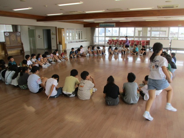 宿泊が終わった次の日、雨の日用プログラムとして用意していた学年集会をみんなで行いました。