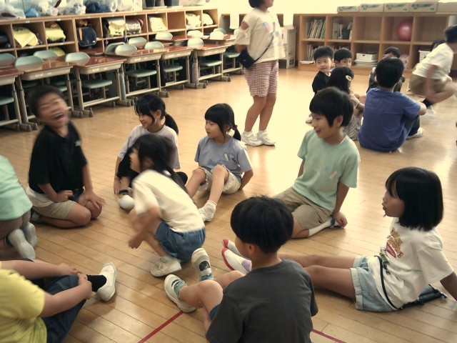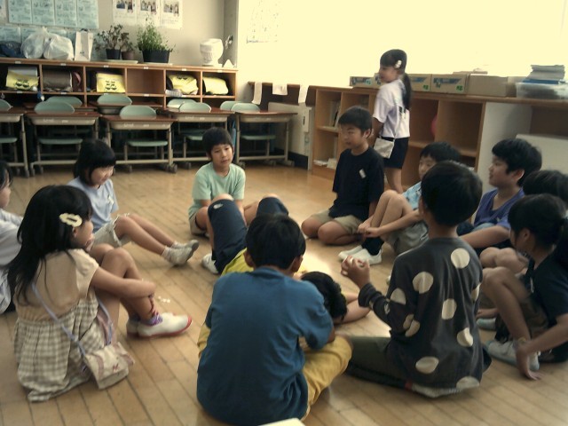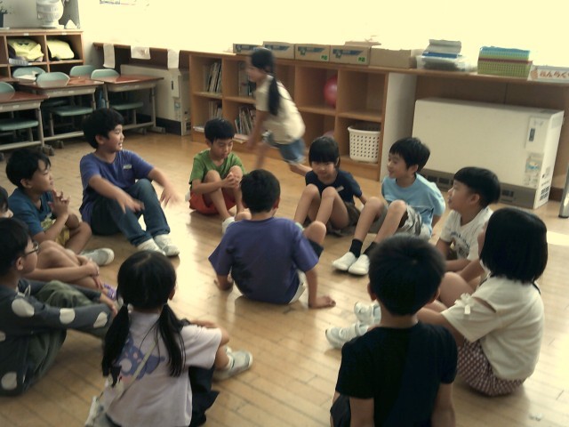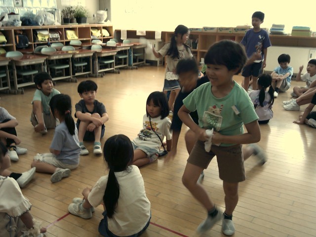 学級の時間に、「ハンカチ落とし」をして楽しみました。学級目標の「なかよく」を大切にして、みんなが笑顔で楽しむことを目標に過ごしました。ハンカチを落とした側と落とされた側での追いかけっこもあり、どきどきわくわくしながら楽しく遊ぶことができました。