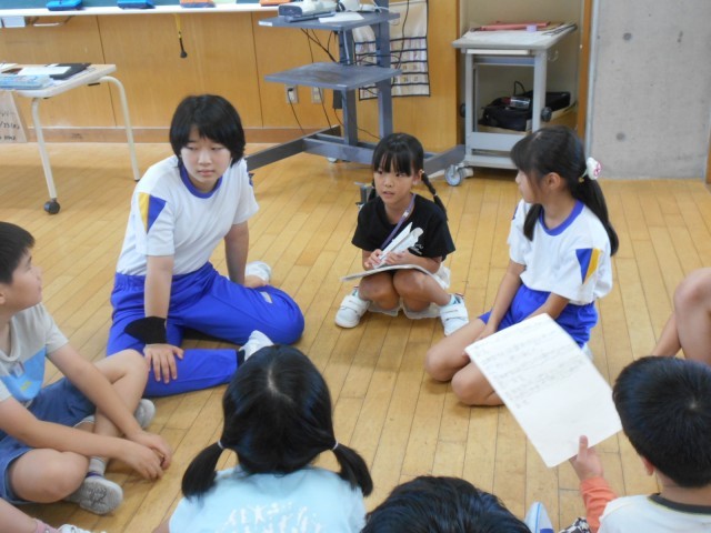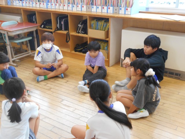 たてわり班の仲間と、校内発表会の感想を伝えあいました。