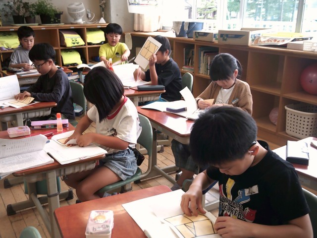 8つの形を仲間分けしました。どこに着目して分けるか、それぞれに悩みながら操作しました。