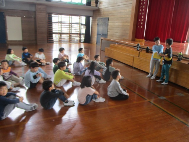 本日はスポーツ係によるお楽しみ会がありました。スポーツ係の2人は『こおりおに』『ドッジボール』を企画して、クラスのみんなを楽しませようとがんばっていました。クラスのみんなは汗だくになるほど楽しんでいました。