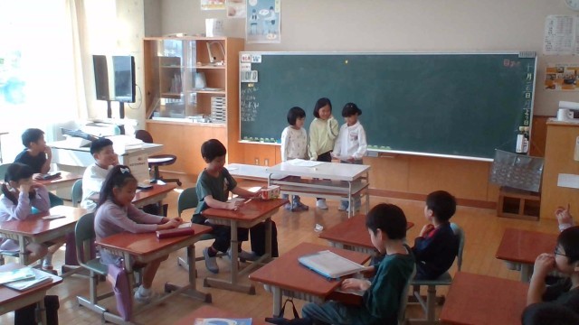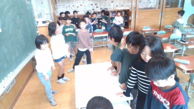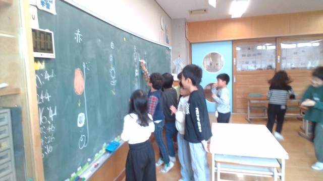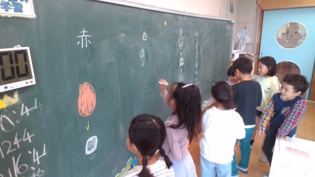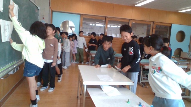 本日はイラスト係によるお楽しみ会がありました。イラスト係の3人は『イラストシルエットクイズ』『絵しりとり』を企画して、クラスのみんなを楽しませようとがんばっていました。クラスのみんなも笑顔で楽しんでいました。