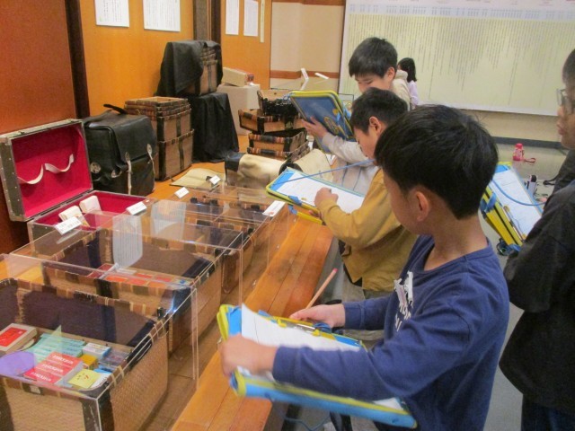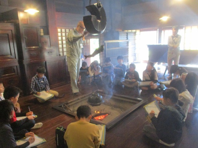 校外学習で、富山市にある民俗民芸村に行きました。建物の様子や、昔に使われていた道具等を見たり聞いたりしながら、100年以上前の人々のくらしを想像し、くらしの移り変わりを感じていました。