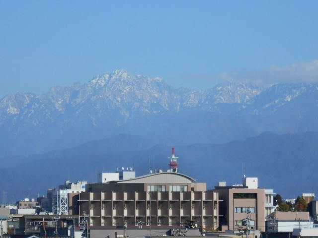先日、立山の初冠雪が観測されましたが、学校からもきれいに見ることができました。青空のもと、とても美しい山並みでした。