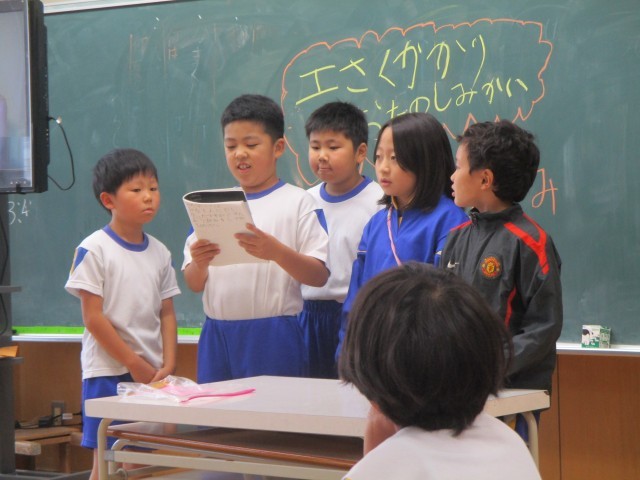 本日は「こうさく係」によるお楽しみ会がありました。「こうさく係」の5人は『クラスのみんなで鶴をおろう!』を企画して、クラスのみんなのために、動画を使ったり、わからない人のお手伝いをしたりしてがんばっていました。クラスのみんなは笑顔で楽しんでいました。