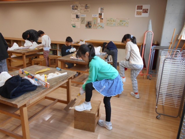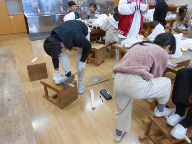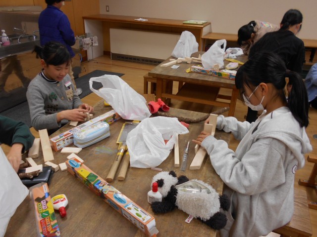 のこぎりを使うのが初めてという子供も多かったのですが、回を重ねるごとに切り方が上達しています。