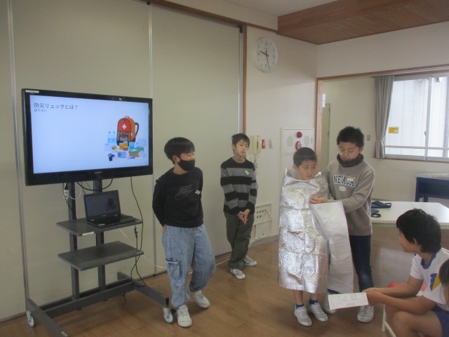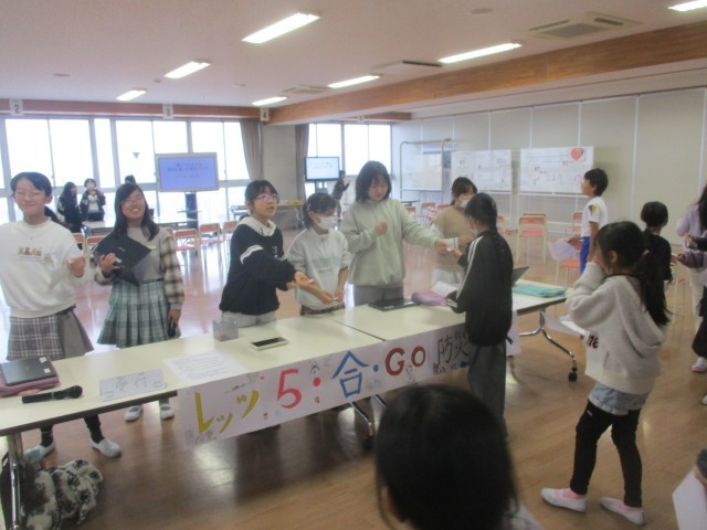 総合的なの学習の時間に「西田守り隊ー自然災害から命を守るー」の学習をしています。西っ子にも防災について考えてもらいたいと「レッツ5・合・GO!防災フェスティバル」を開催しました。それぞれのブースごとに、内容を楽しく分かりやすく伝えるために、クイズにしたり実際に一緒に作る活動を取り入れたりして、表現方法を工夫しました。