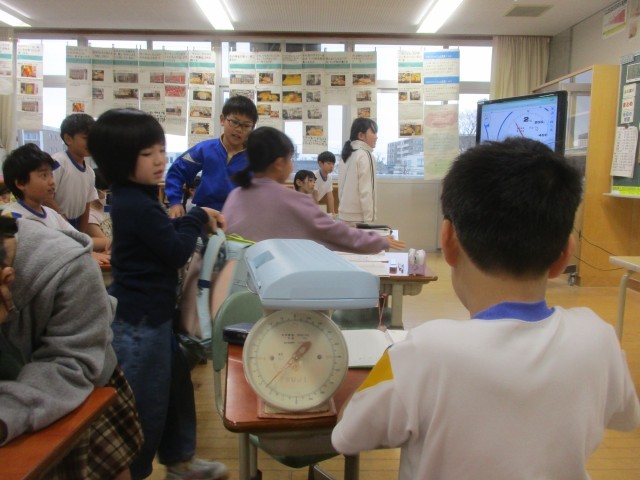 「1キログラムぴったりの重さにしよう」という課題では、物の重さに見当を付けてすばやく1キログラムにしようとする姿が見られました。