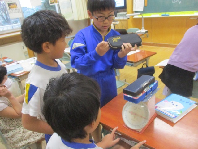 算数の重さの学習では、様々なものを測り、「キログラム」や「グラム」を用いて重さを表しました。