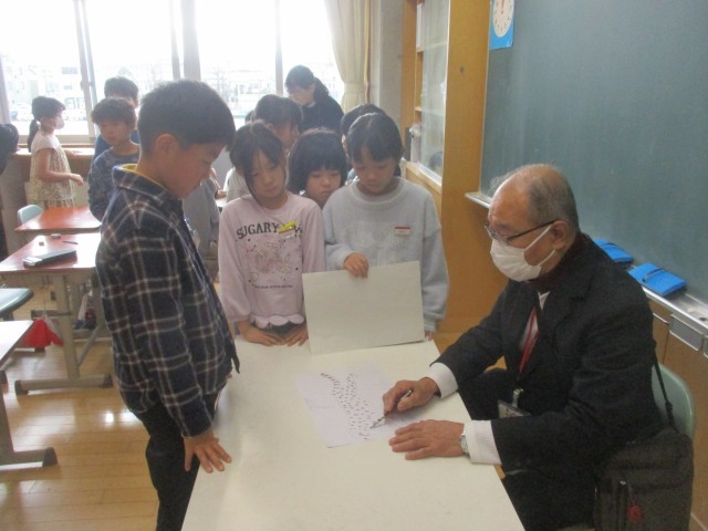 図画工作科では、彫刻刀を使った版画に取り組みます。自分が会いたい動物の毛並みや構図等、講師の先生のアドバイスを聞きながら描きました。