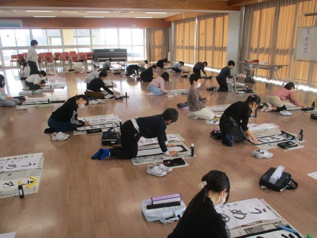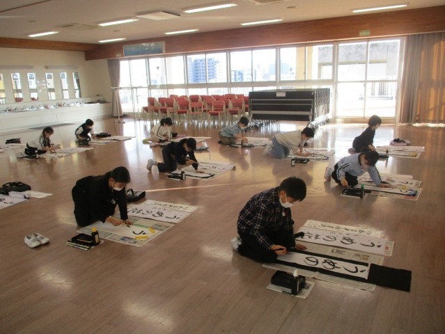 3年生は、書き初め練習に取り組みました。毛筆の書き初めは初めてなので、長い書き初め用紙に文字を書くことや、床に用紙を置いて取り組むこと等、慣れないながらも一字ずつ丁寧に書いていました。