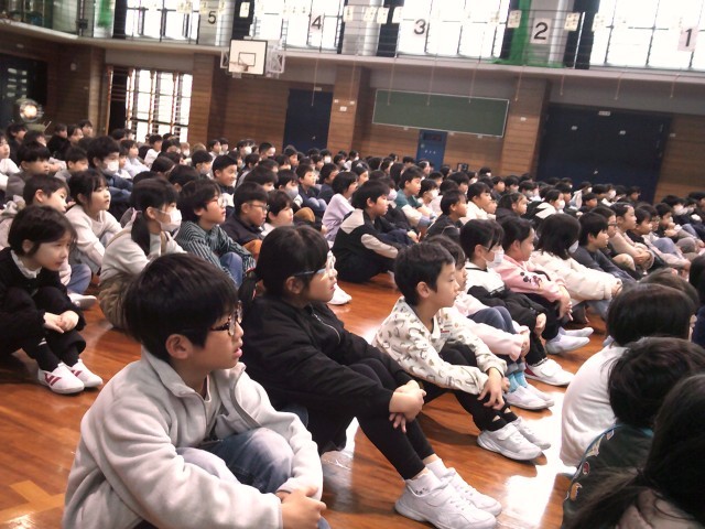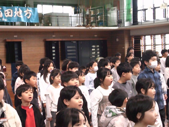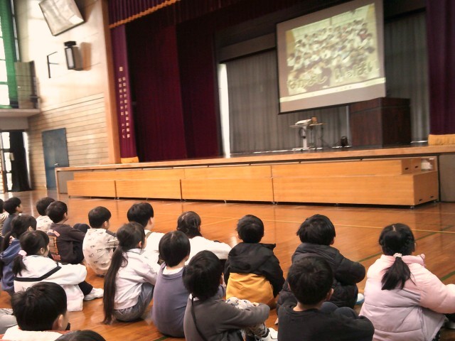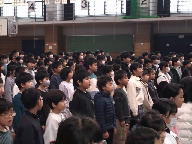 校長先生からのお話では、各学年の頑張っていた様子を映し出されたスライドを観ました。それぞれのスライドにどのような頑張りや力が身に付いたかコメントが書いてあり、子供たちは自分たちの頑張りをあらためて知り、嬉しそうに観ていました。