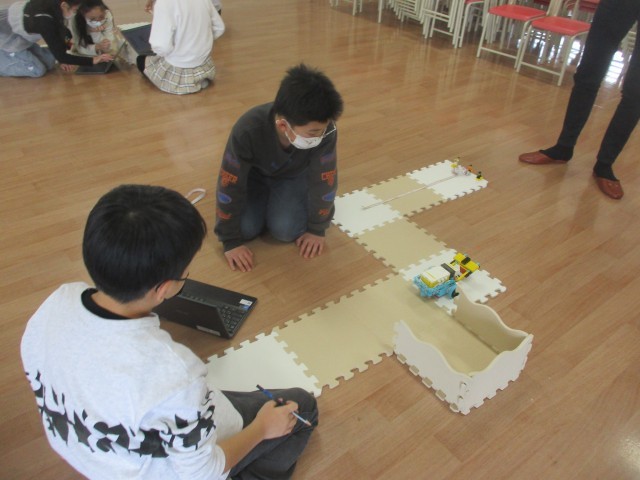 プログラミング教室がありました。ロボットの仕組みを理解し、実際にプログラミングをしてロボットを動かしました。トライ&エラーをしながら夢中になって取り組む姿がみられました。