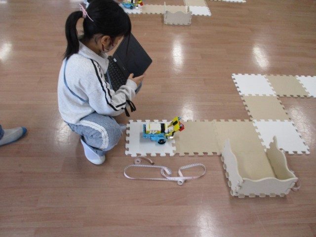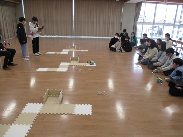 プログラミング教室では、ペアと相談してプログラムを組んだり修正したりしました。最後はクラスのみんなに発表をしました。考えたプログラム通り動かす難しさや楽しさを実感する子供たちでした。