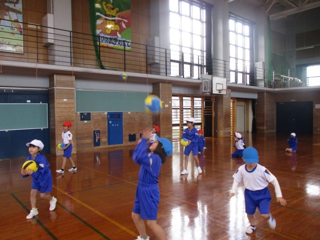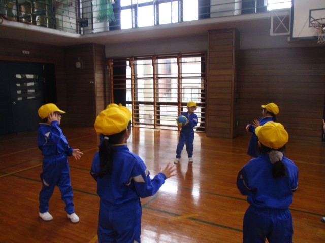 体育の授業では、ボール遊びが始まりました。今日は、ボールを投げたりキャッチしたりする練習をしました。どのような構え方でボールをキャッチすればよいか考えたり、相手のどこに向けて投げると取りやすいのか考えたりしながら、キャッチボールを楽しみました。